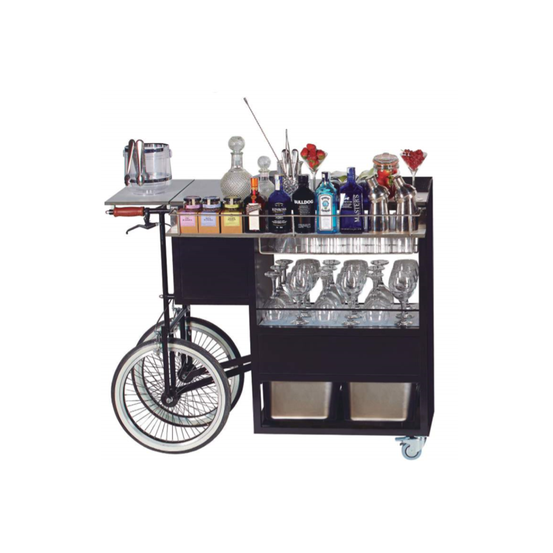 Crafted with quality materials, this trolley features a stainless steel worktop, durable shelving, smooth-slide drawers, and sturdy wheels designed for commercial use. Whether located behind the bar, at an event venue, poolside, outdoor terrace or mobile party setup, the trolley gives bartenders full access to their tools, ingredients and service workflow. It supports the flow of service by offering organized space for shakers, bottles, ice buckets, garnish trays, bar mats, glassware, and small equipment, making it ideal for events, weddings, hotel bars, resort outlets, VIP service and premium mobile bars.