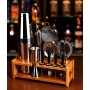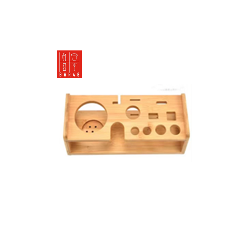 The wooden build ensures long-lasting stability, while the carefully designed compartments guarantee that tools fit securely without wobbling. Whether you are organizing a professional bar or building a premium home cocktail station, this stand elevates your barware presentation and keeps your tools within easy reach.